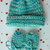 Handgestricktes Set für Neugeborene bis ca. 2 Monate, bestehend aus Mütze Kopfumfang 31 - 34 cm und Handschuhen ca. 8.5 cm. Farbe mint bis petrol. Material 75% Merino, 25% Polyamid, handgefärbt. Maschinenwäsche 30°C Wollprogramm mit Feinwaschmittel, keinen Weichspüler verwenden.