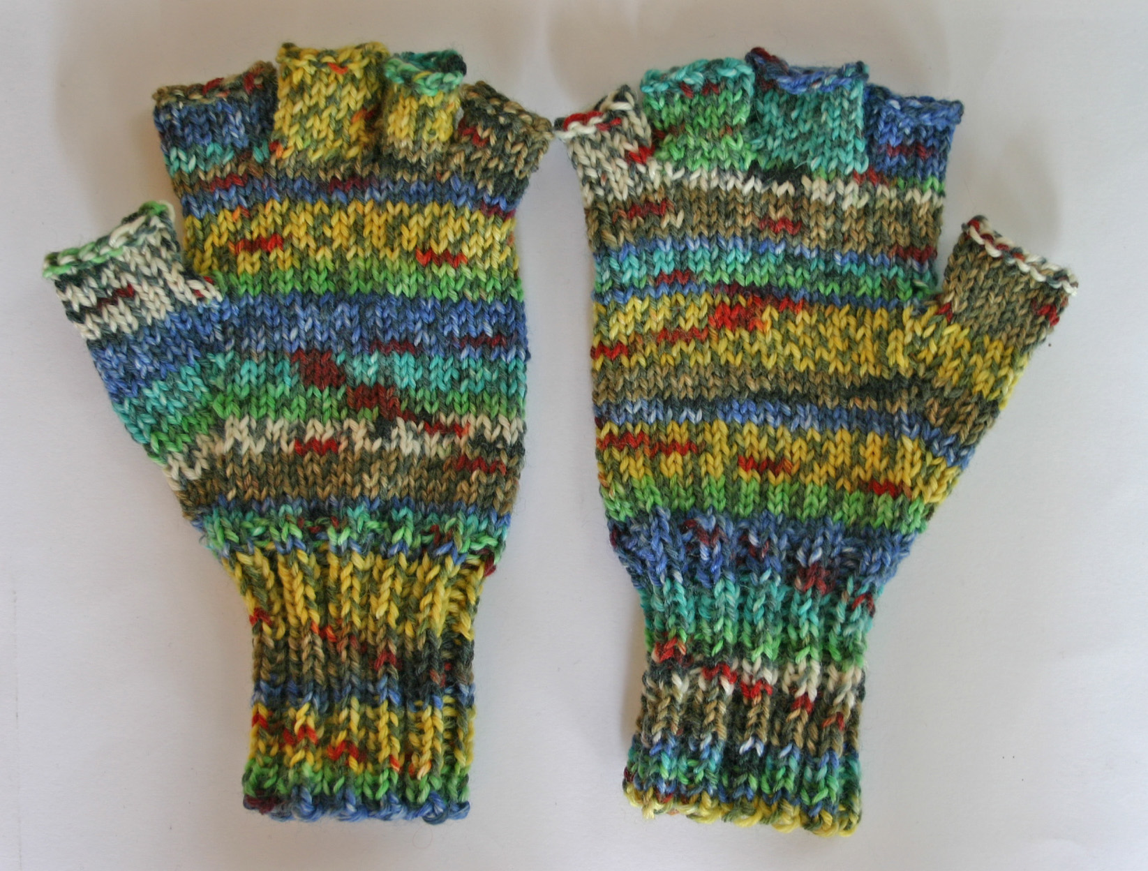 Handgestrickte warme Handschuhe mit kurzen Fingern. Grösse 10, Handumfang 24 cm.
